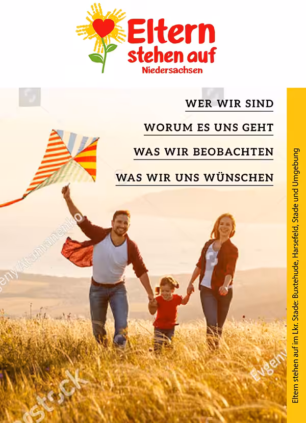 Eine weitere wichtige Organisation in unserer Region, die sich für die Rechte der Kinder einsetzt, ist Eltern stehen auf. BuxAktiv arbeitet eng mit den Verantwortlichen dieser Gemeinschaft zusammen. Gemeinsam wurde z.B. die Informationsbroschüre „Eltern stehen auf Niedersachsen“ entwickelt:
